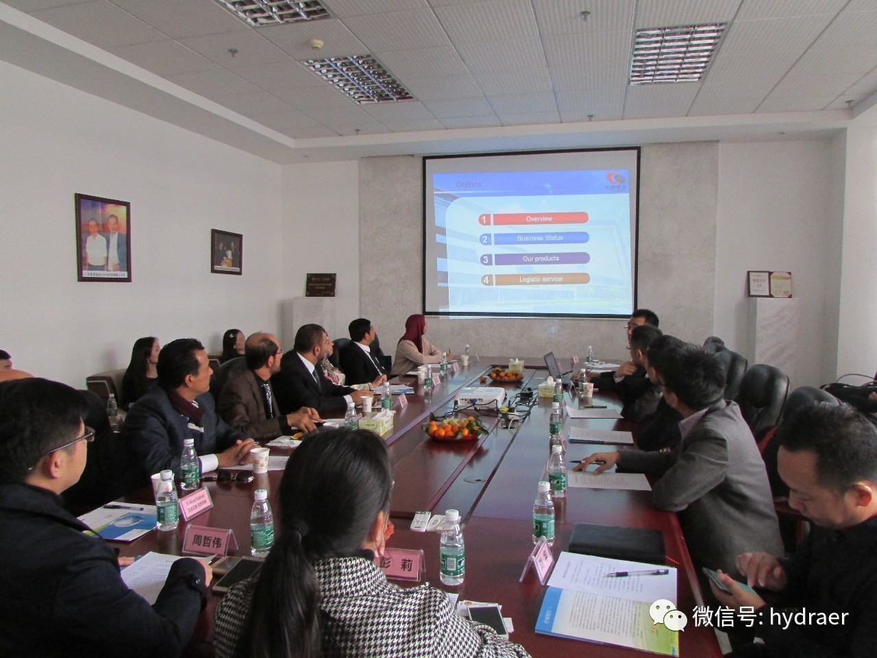 12月14日,在全國政協外事委員會的錢進副局長和廣東省政協外事僑務委員會的施志全副主任組織下,由哈立德·賽義迪博士(阿曼中國友好協會秘書長、阿曼國家委員會秘書長)帶領的阿曼中國友好協會代表團8名成員及廣東省農業機械公司、廣東省現代農業裝備研究所、海聚高分子材料科技(廣州)有限公司、廣東億潤網絡技術有限公司、廣東通非供應鏈管理股份有限公司等中方眾多代表蒞臨我司參觀交流。