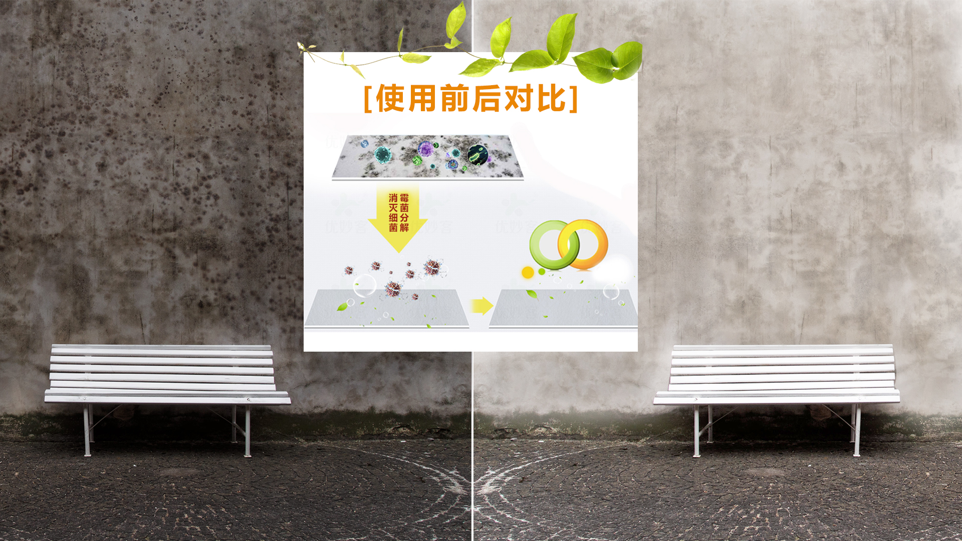 均勻噴濕待處理面后即可離開,30分分鐘后,霉斑已經(jīng)全部消失。